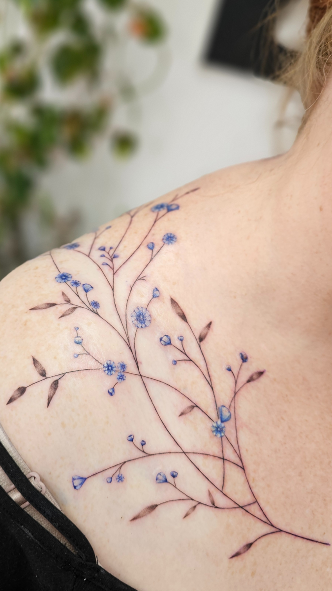 Tami — Founder & ArtistTami is the creative force behind Vesper & Quill. Known for her custom watercolor tattoos and fine-line floral work, she blends painterly softness with delicate detailing to create designs that feel alive on the skin. her passion lies in turning personal stories into wearable art, giving her clients tattoos that hold meaning as much as beauty.